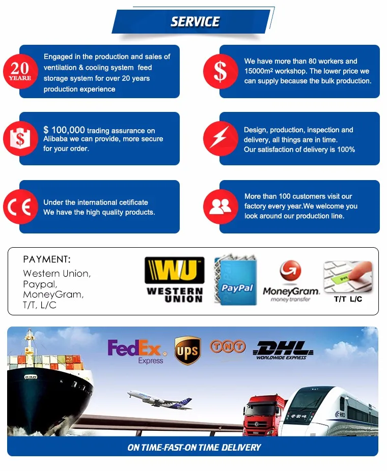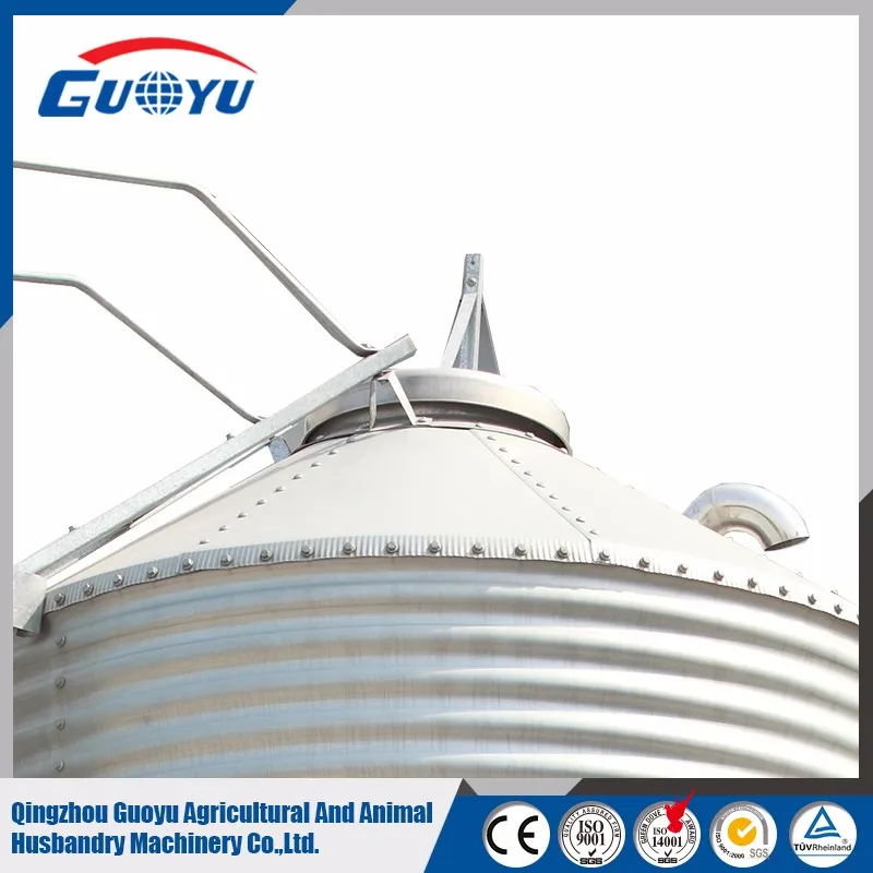 Silo consist of main warehouse, flip, ladders, columns and other components. the main warehouse used 275g/m2, double hot dip galvanized sheet steel, has a lower conical holes to view feed level. silo volume according to different actual combinations.Hoarding water in a slope, in the horadings at the bottom flange, so that rain water away from the cutting area. Provide weather protection , regardless of the weather. the next round head screw connection cone inside, effectively reducing cutting resistance. Upper and lower cone by pressure off treatment,both to improve the cone and strength of cone bottom's overall, but also conducive to bilateral clay bar installation , enhanced sealing.