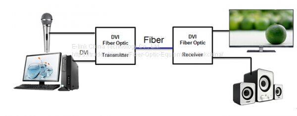 The extender set consists of an optical transmitter module that converts the DVI/HDMI signals into light pulses for transmission over a 2 cores fiber. An optical receiver module converts the light pulses back to a DVI/HDMI signal for display on a monitor or projector.