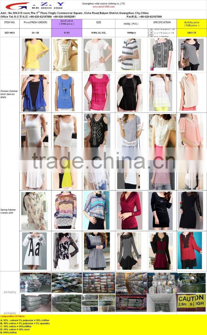 Home > Products > Stock Mixed Style Wholesale > GZY Factory Price Mixed Women Shirts Stock Lot