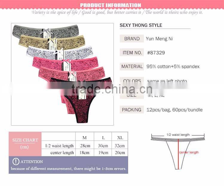 Yun Meng Ni Sexy Underwear Zebra Printed Women's T-back Soft Cotton Thong