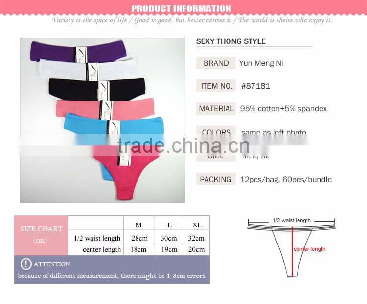 Yun Meng Ni Underwear Six Colors Simple Design Cotton Lady Thongs