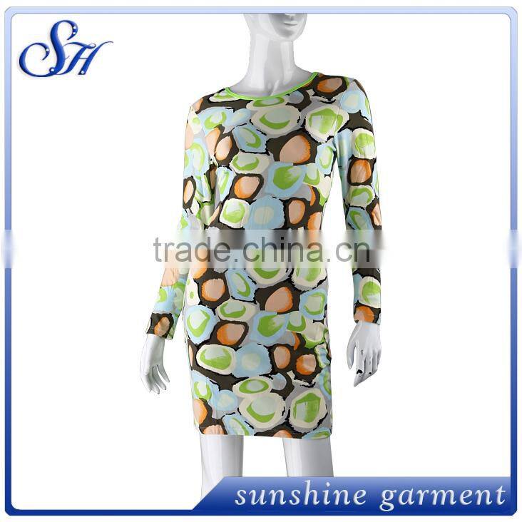 Hot selling milky fabric long sleeve printing women dress