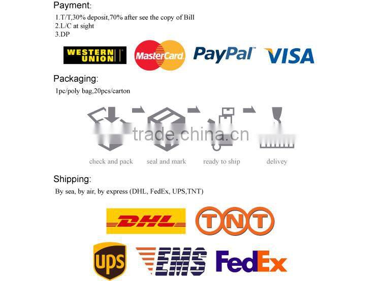 Package: | Solid color,solid size,1pc/polybag,20pcs/ctn. Or according to your requirement. | |