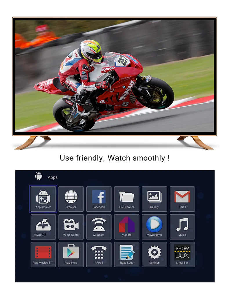 Smart TV Box Fully Loaded 17.1 Rockchip Box TV Android 6.0 CPU 64bits 2g Ott Android tv Box Channels tv Box Streaming