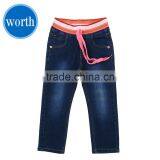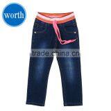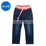 - 2016 Latest Fashion Fancy Printed Dark Wash Girls Denim Pant Slim Fit With Belt #9R5792
