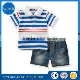 (Polo Pent 2 Pcs Set) Stripe Polo Shirts and Denim Jean Shorts for Kids Wholesale Importing From China