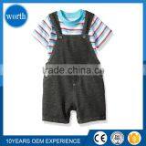 (2 Pieces Set) Baby Overall Garment With Stripped Style Tee Shirt Suitable for European and American Produced in Quanzhou