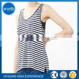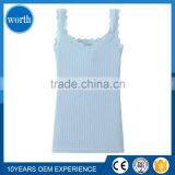 100%cotton Lady Sexy Beautiful Yarn Dyed Sleeveless Long Lace Stripped Vest