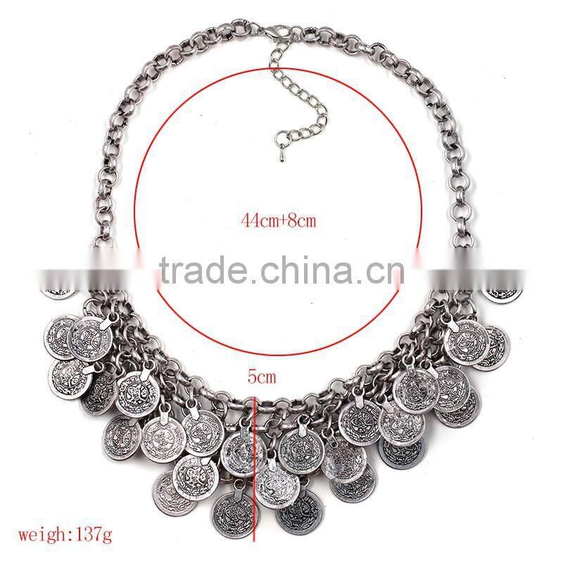 Classic coin pendant silver color necklace jewelry for unisex adults