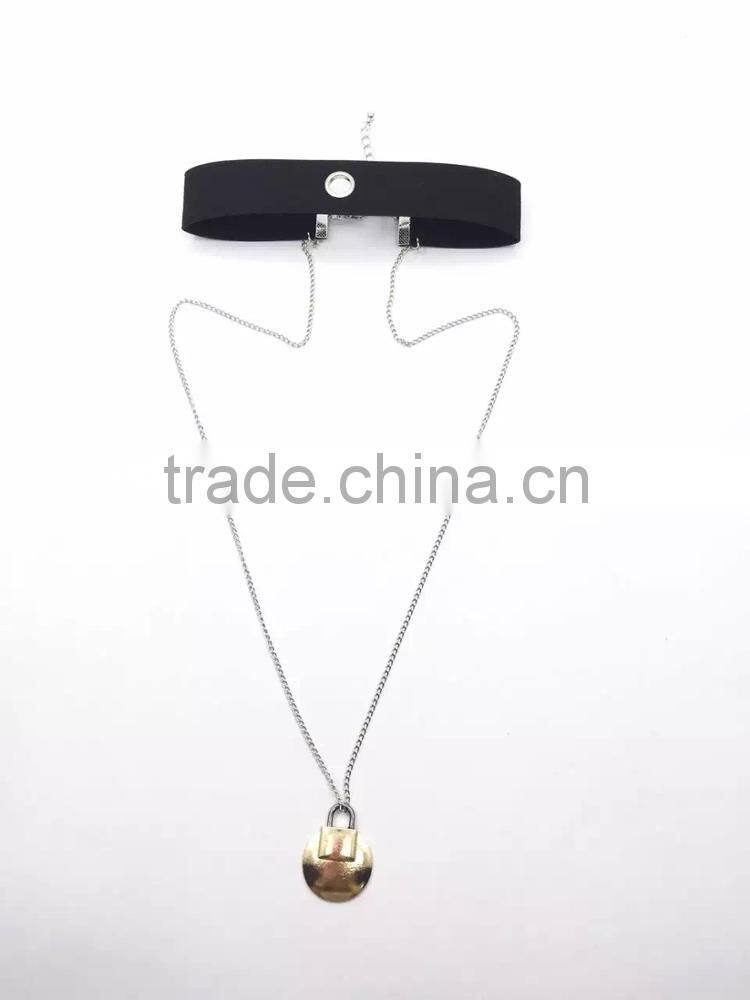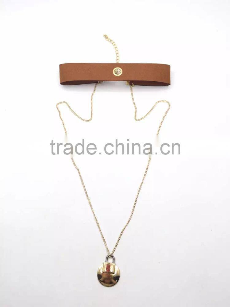 Simple Brand Leather Choker With Locket Pendant Long Chain Necklace