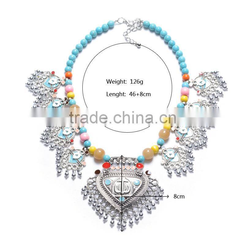 Europe and the United States exaggerate the new beads chain necklace spring summer alloy fan-shaped pendant vintage jewelry
