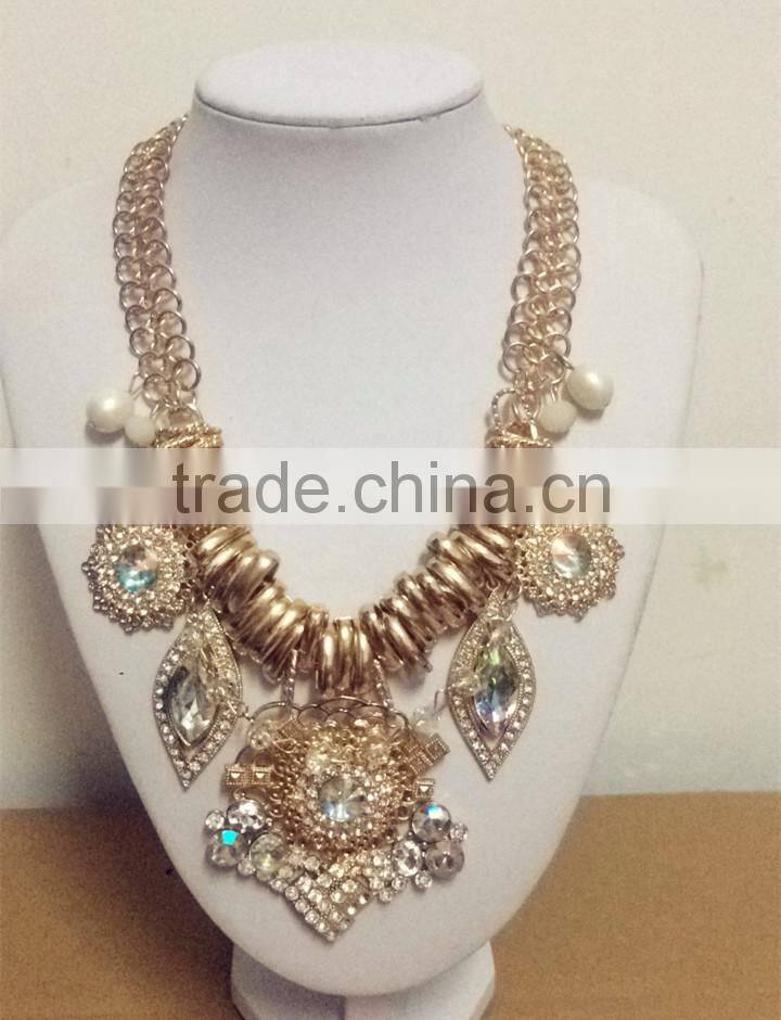 Brand fashion large crystal stone alloy charms necklaces