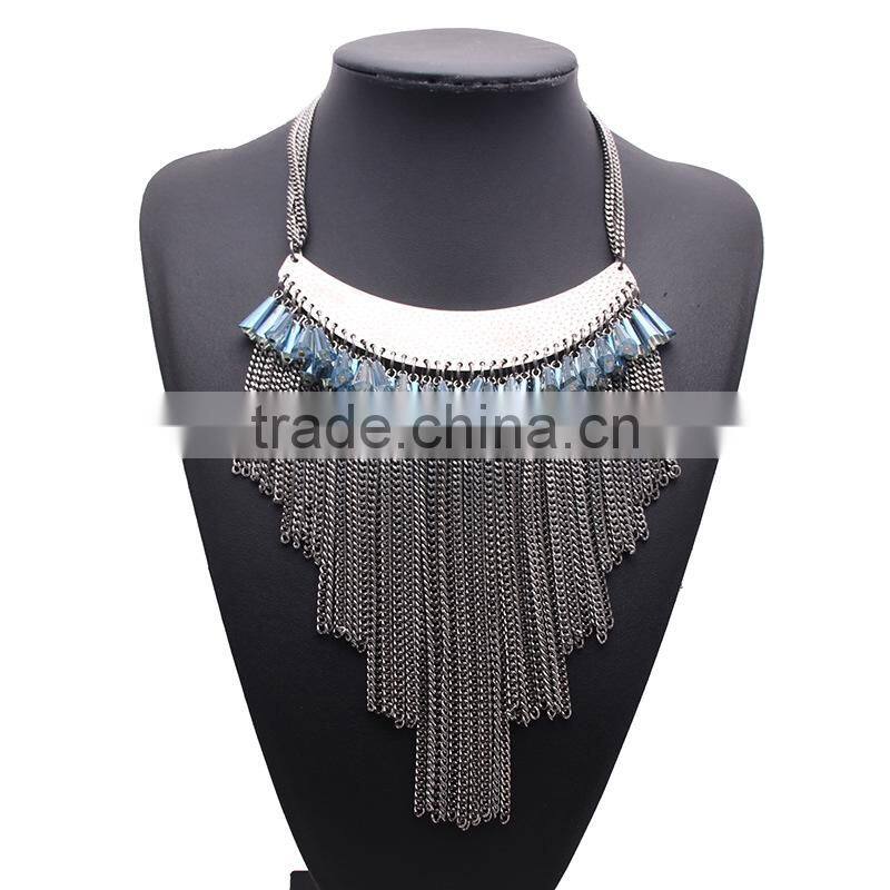 New design Bohemian style multi chain tassel crystal pendant necklaces