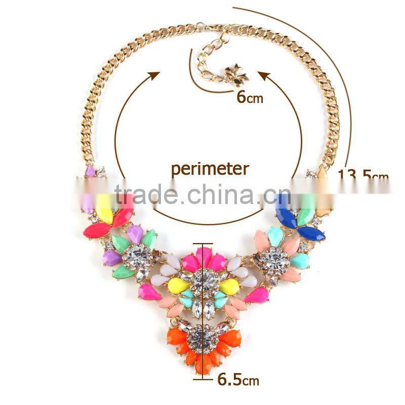 Multicolor resin gems women simple necklace ,yiwu jewelry factory