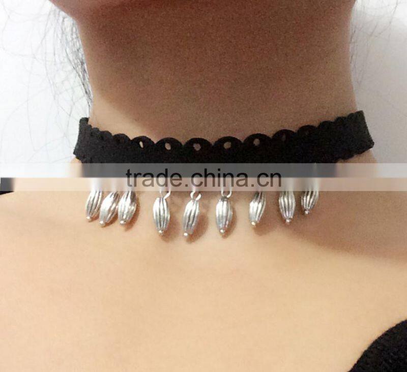 Fashion silver charms pendant black chamois leather choker for womens jewelry