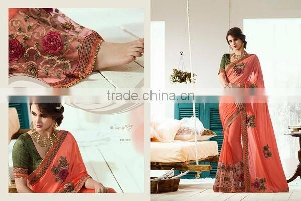 1. Designer Saree with Heavy Embroidery & Lace border.