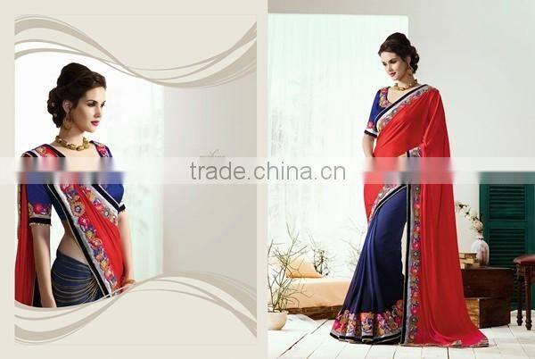 1. Designer Saree with Heavy Embroidery & Lace border.