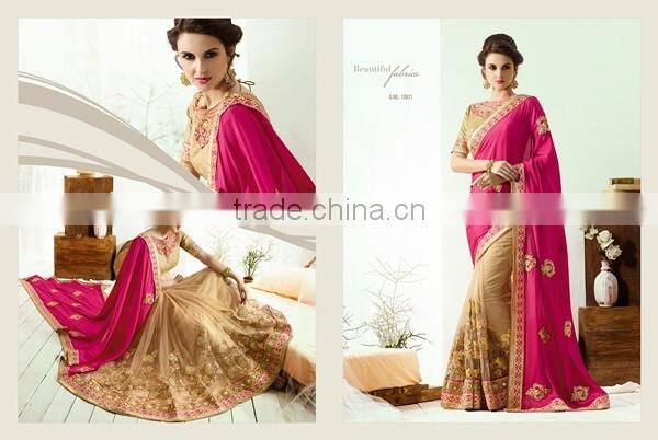 Heavy Embroidery Saree Georgette Pallu+net Skirt With Sartin Gota Blouse
