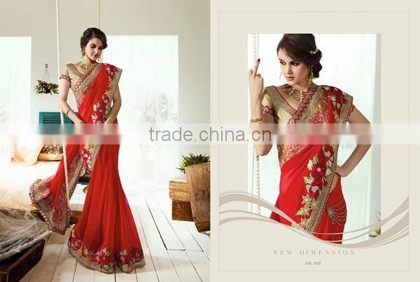 1. Designer Saree with Heavy Embroidery & Lace border.