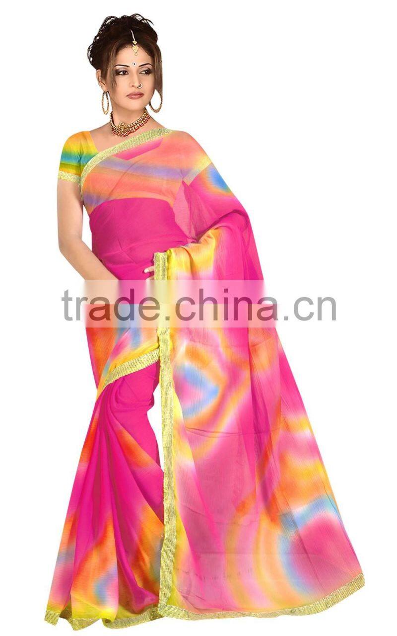 1. Designer Printed Saree with Blouse & Lace border.