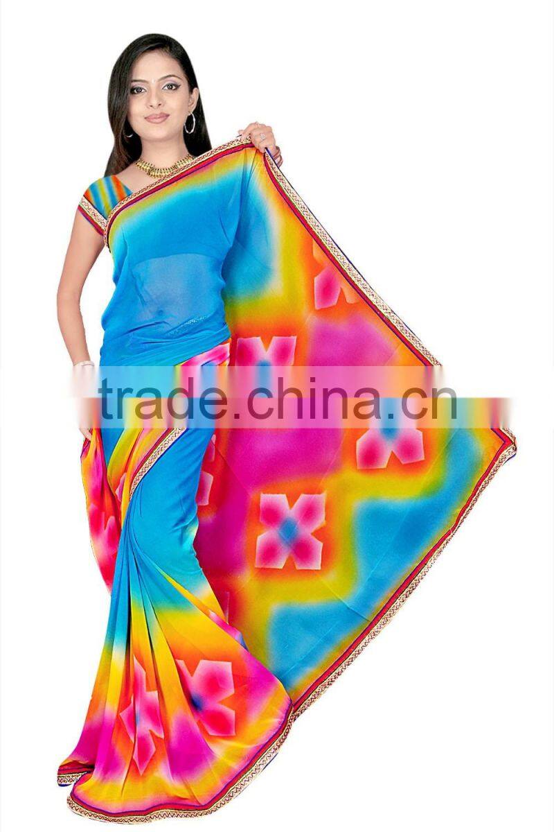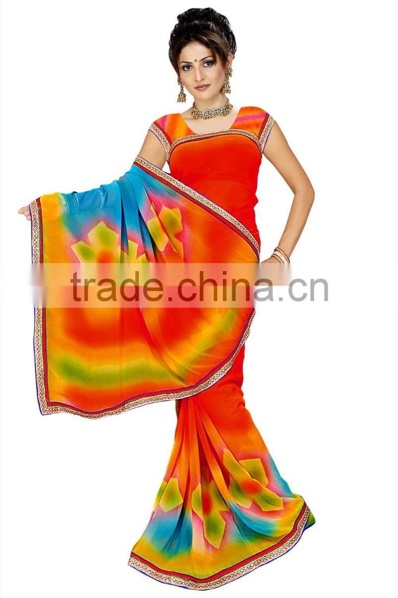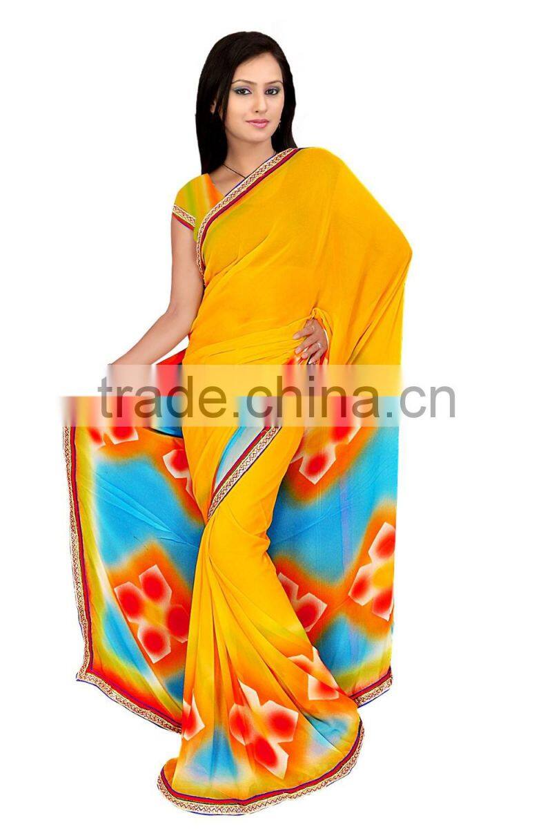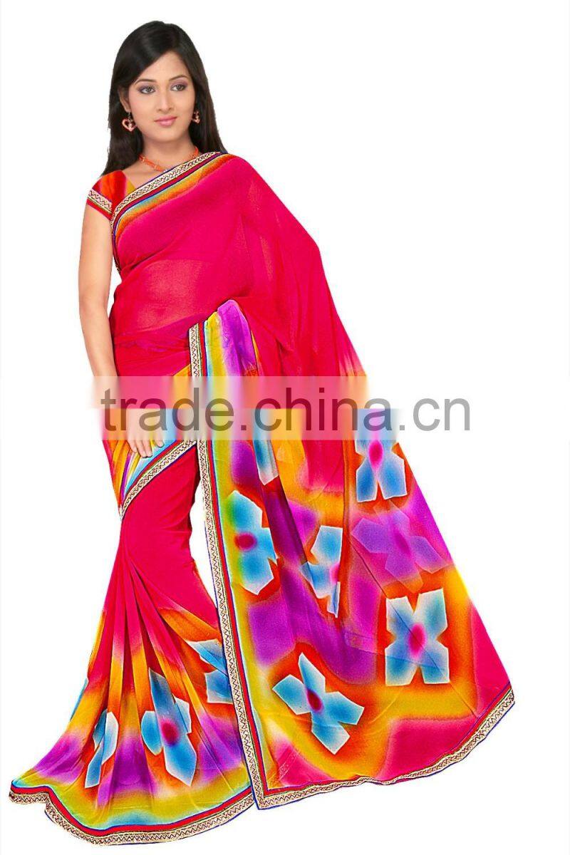 1. Designer Printed Saree with Blouse & Lace border.