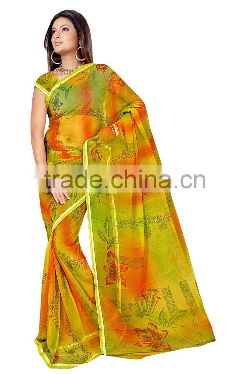 This Eye-Catching Elegant Is Perfect for Any Occasion.This Printed Machine to Made by Designer Print Saree Keeps Ahead in the Fashionable Saree industry.This Mix Color On Polyester / Georgette full saree with blouse , Saree is an Original SitatexFashions design .