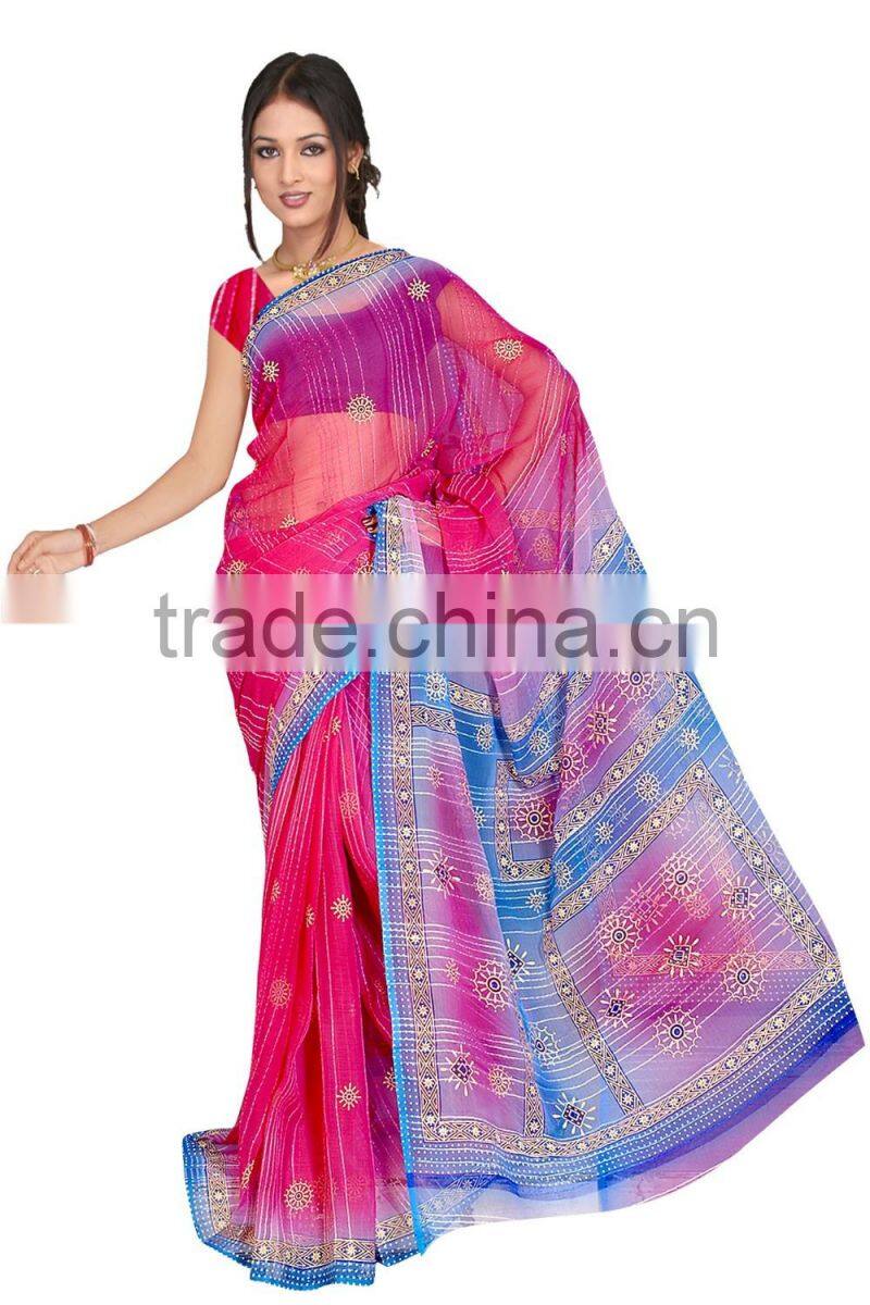 This Eye-Catching Elegant Is Perfect for Any Occasion.This Printed Machine to Made by Designer Print Saree Keeps Ahead in the Fashionable Saree industry.This Mix Color On Polyester / Georgette full saree with blouse , Saree is an Original SitatexFashions design .