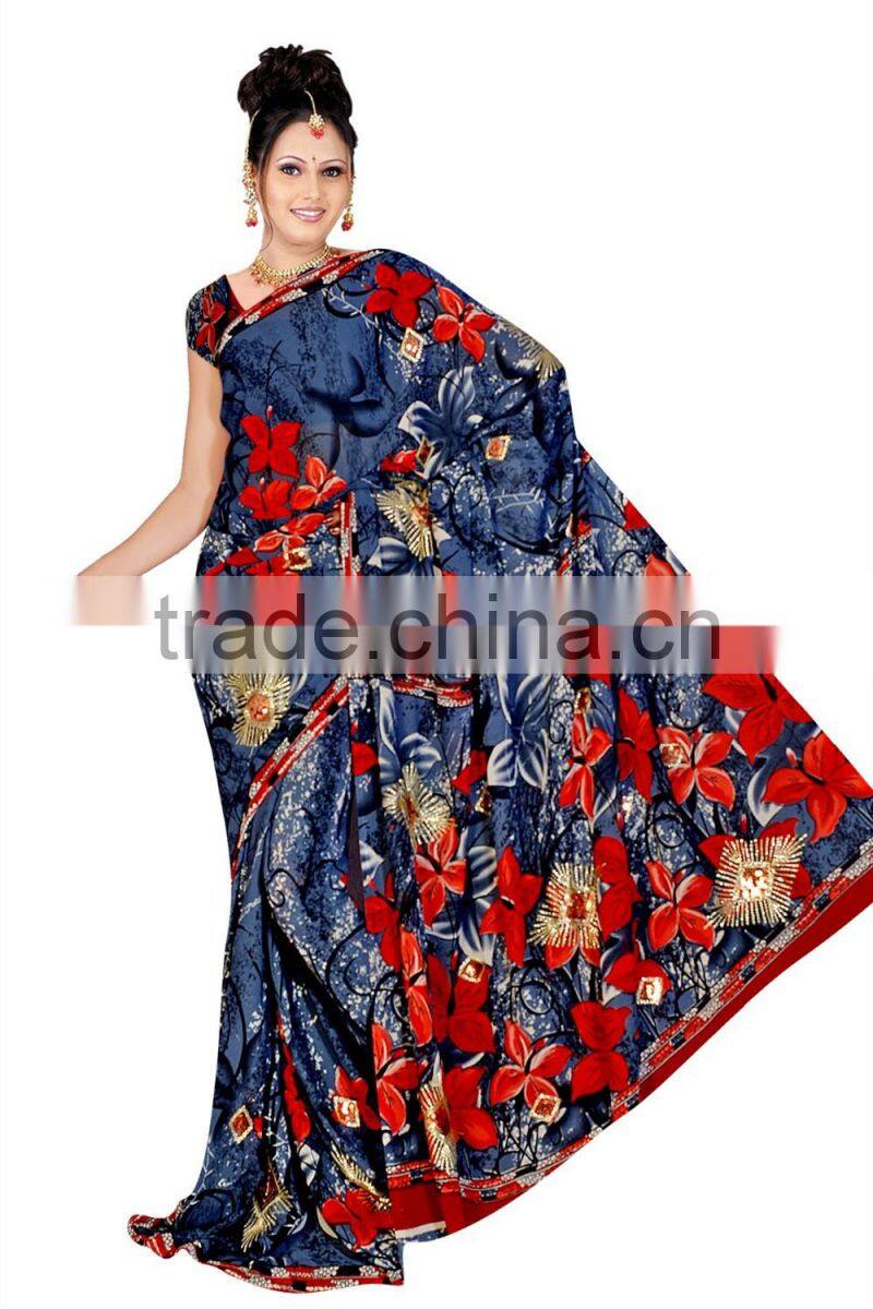 This Eye-Catching Elegant Is Perfect for Any Occasion.This Printed Machine to Made by Designer Print Saree Keeps Ahead in the Fashionable Saree industry.This Mix Color On Polyester / Georgette full saree with blouse , Saree is an Original SitatexFashions design .