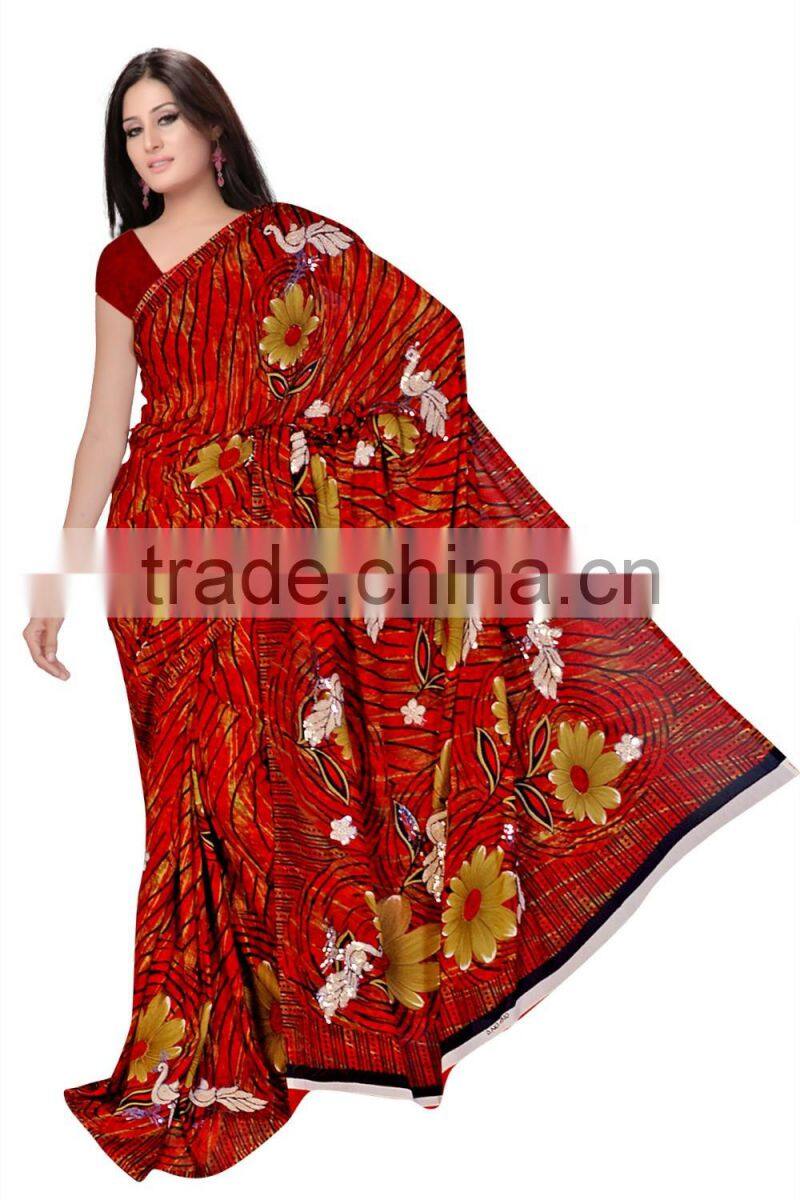 This Eye-Catching Elegant Is Perfect for Any Occasion.This Printed Machine to Made by Designer Print Saree Keeps Ahead in the Fashionable Saree industry.This Mix Color On Polyester / Georgette full saree with blouse , Saree is an Original SitatexFashions design .