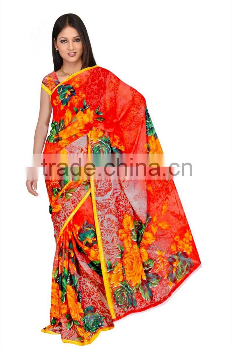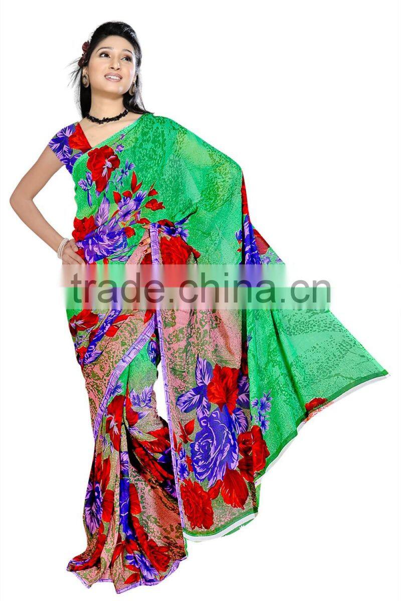 This Eye-Catching Elegant Is Perfect for Any Occasion.This Printed  Machine to Made by Designer Print Saree Keeps Ahead in the Fashionable Saree industry.This Mix  Color On Polyester / Georgette full saree with  blouse , Saree is an Original SitatexFashions design .