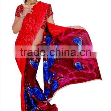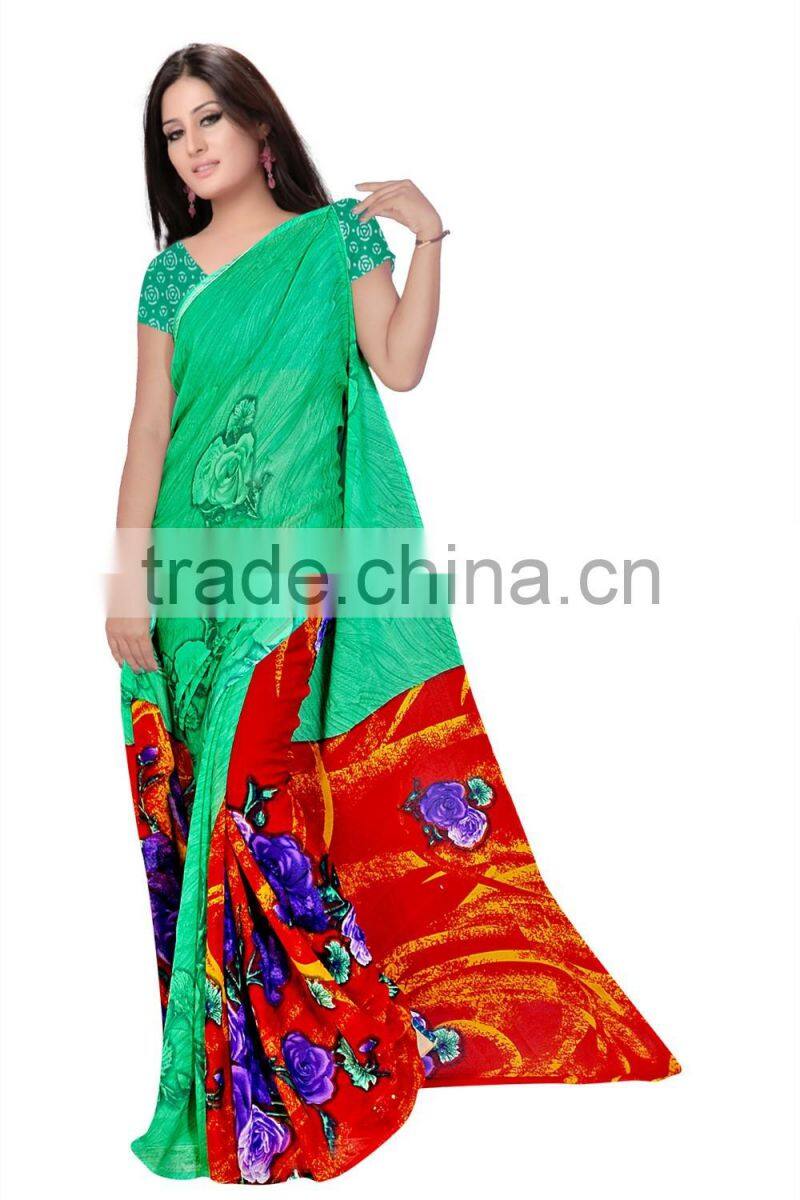 This Eye-Catching Elegant Is Perfect for Any Occasion.This Printed  Machine to Made by Designer Print Saree Keeps Ahead in the Fashionable Saree industry.This Mix  Color On Polyester / Georgette full saree with  blouse , Saree is an Original SitatexFashions design .
