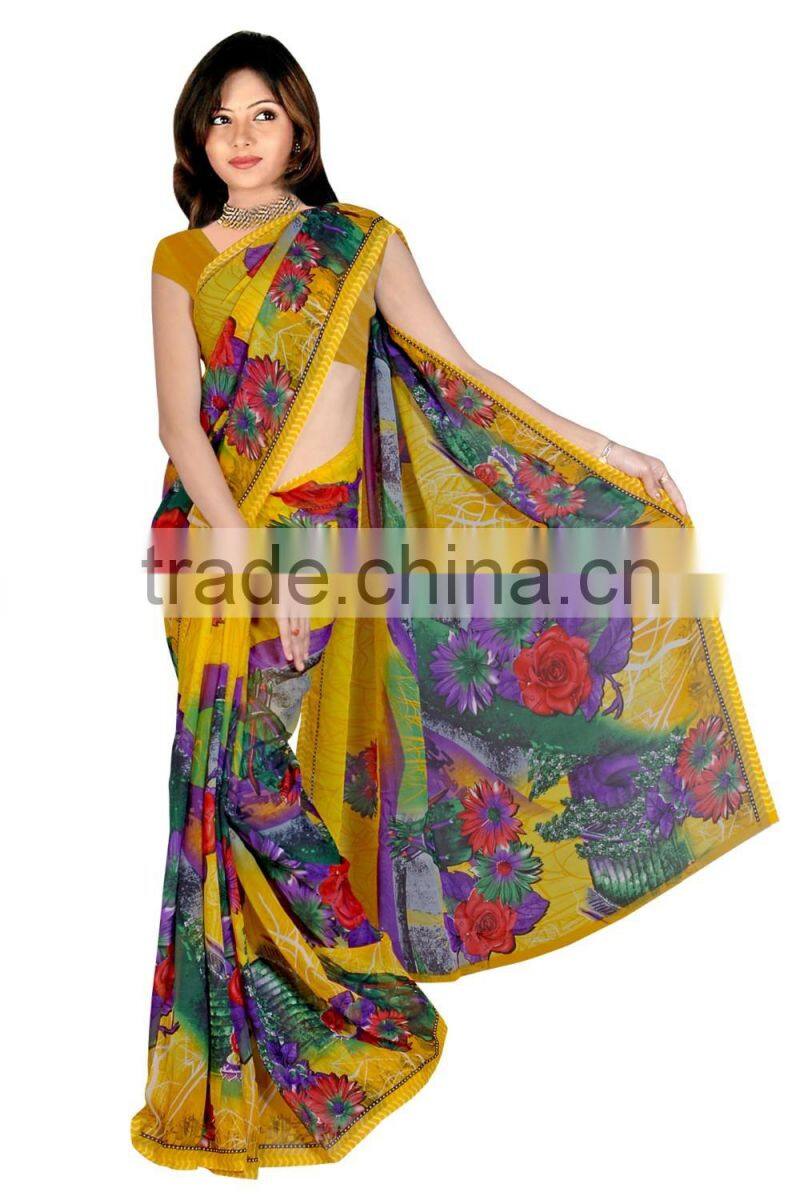 This Eye-Catching Elegant Is Perfect for Any Occasion.This Printed Machine to Made by Designer Print Saree Keeps Ahead in the Fashionable Saree industry.This Mix Color On Polyester / Georgette full saree with blouse , Saree is an Original SitatexFashions design .