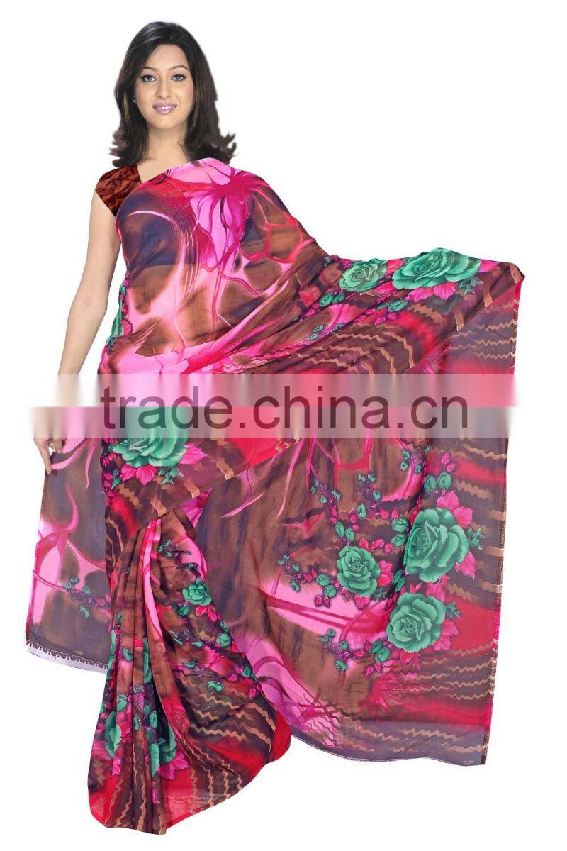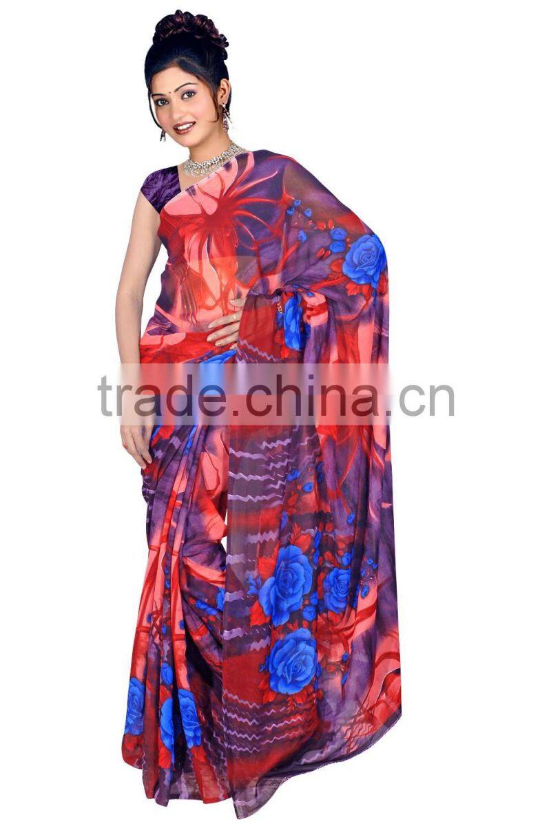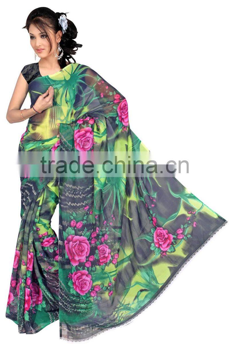 This Eye-Catching Elegant Is Perfect for Any Occasion.This Printed  Machine to Made by Designer Print Saree Keeps Ahead in the Fashionable Saree industry.This Mix  Color On Polyester / Georgette full saree with  blouse , Saree is an Original SitatexFashions design .