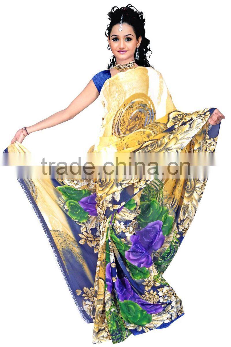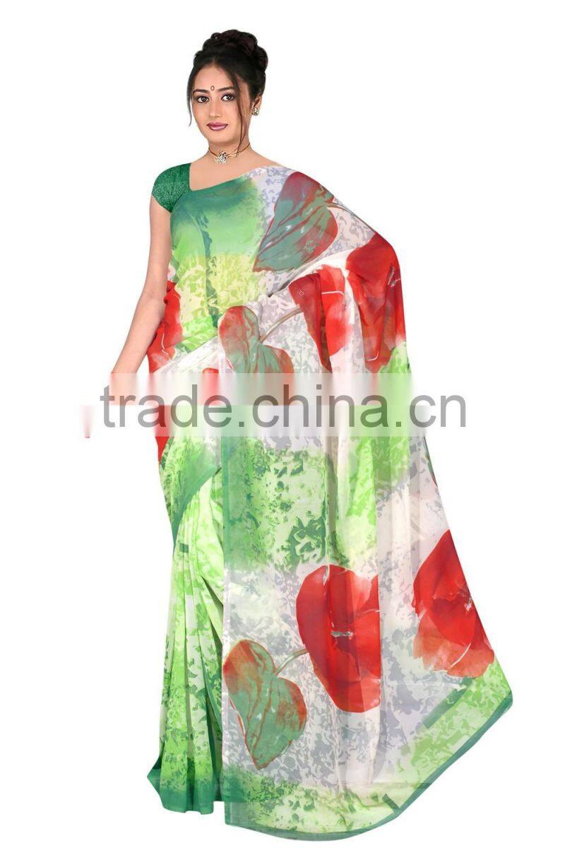This Eye-Catching Elegant Is Perfect for Any Occasion.This Printed  Machine to Made by Designer Print Saree Keeps Ahead in the Fashionable Saree industry.This Mix  Color On Polyester / Georgette full saree with  blouse , Saree is an Original SitatexFashions design .
