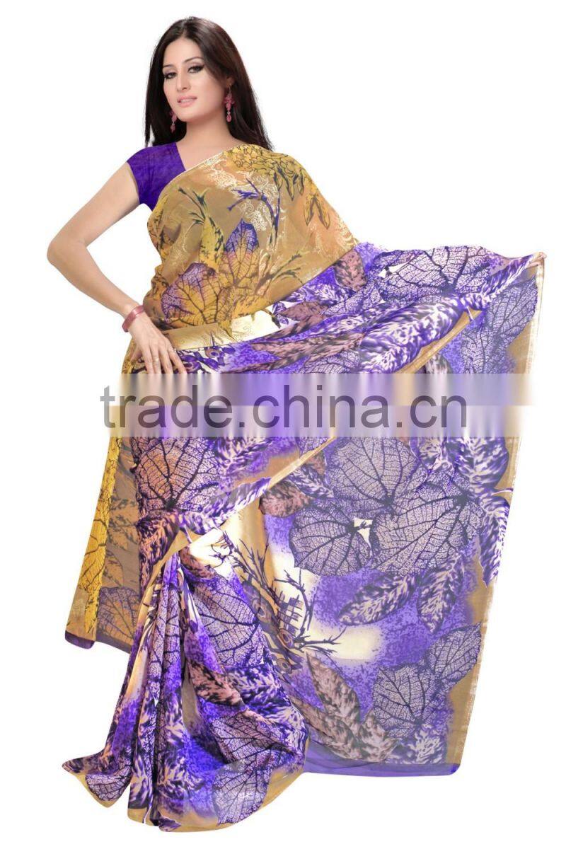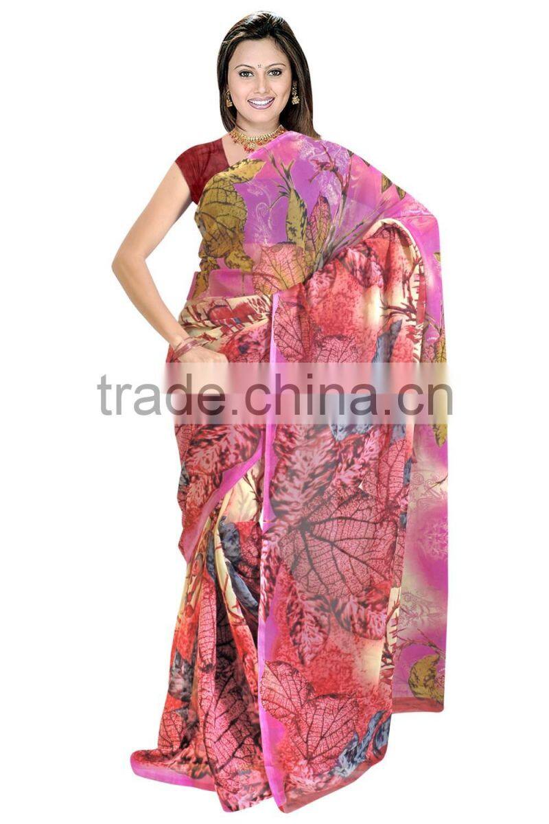 Home > Apparel & Accessories > Ethnic & Folk Apparel > Digital Flower Printed Designer Styles Saree in Georgette Fabric
