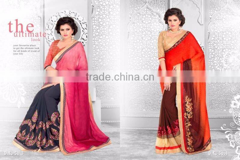 This Eye-Catching Elegant Is Perfect for Any Occasion.This Embroidery Machine to Made by Designer Embroidery Saree Keeps Ahead in the Fashionable Saree industry.This Mix Color On Georgette full saree with blouse , Saree is an Original SitatexFashions design .