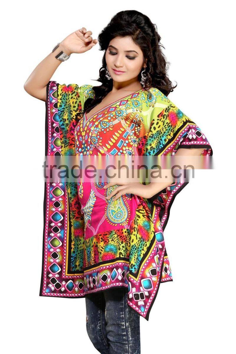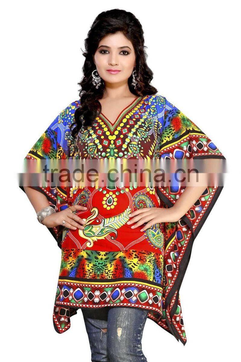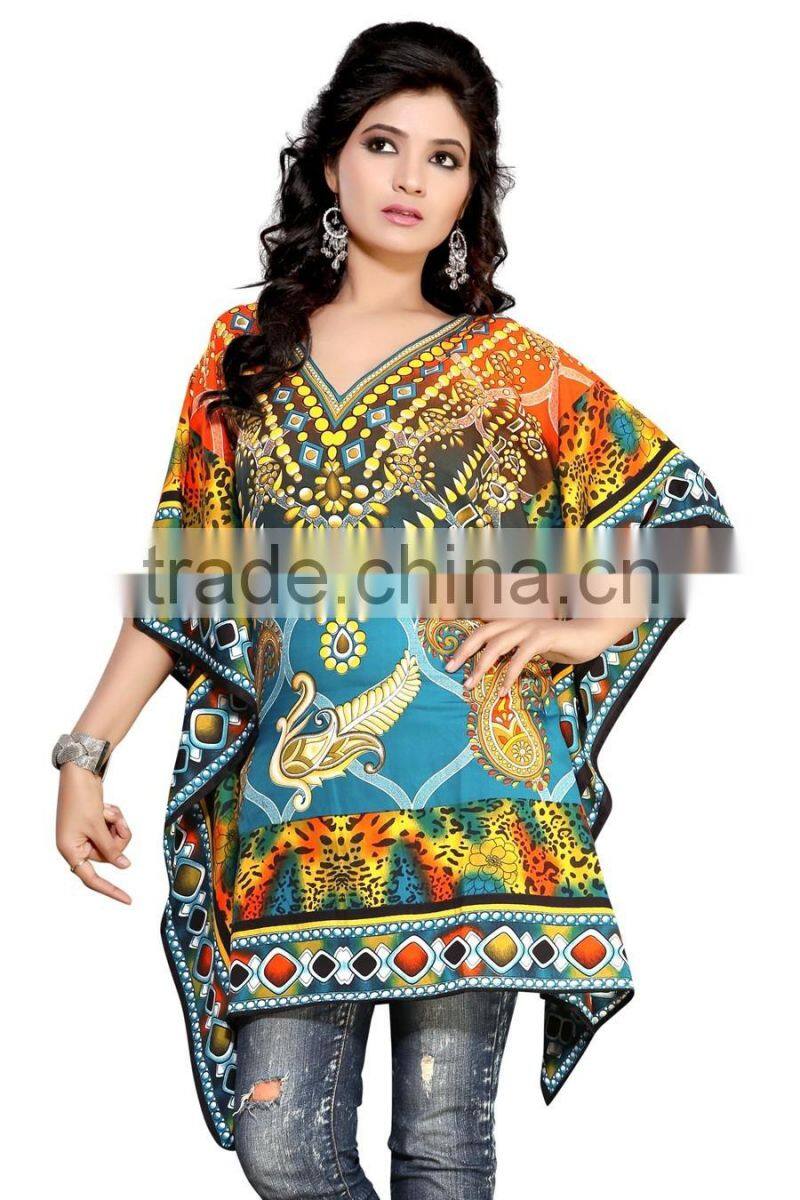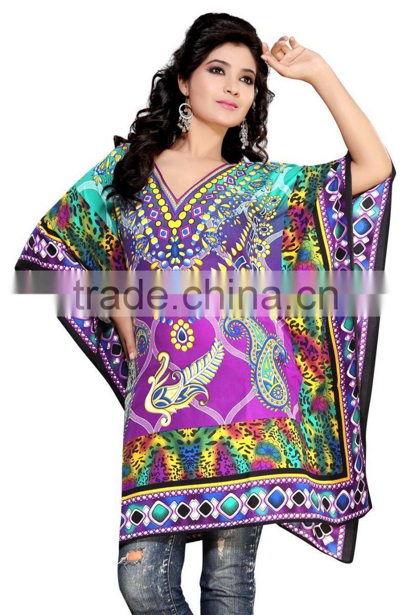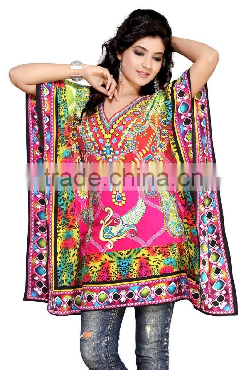 Designer Print Canvas Crepe Digital Printed Kaftan / Poncho/pakistani Kaftan Dresses