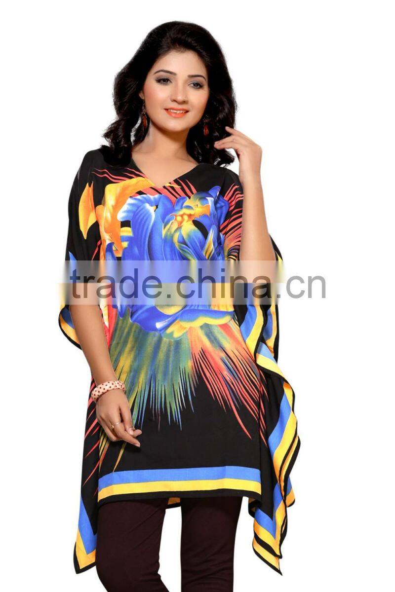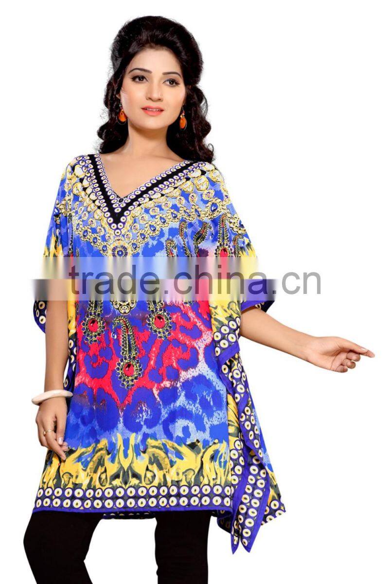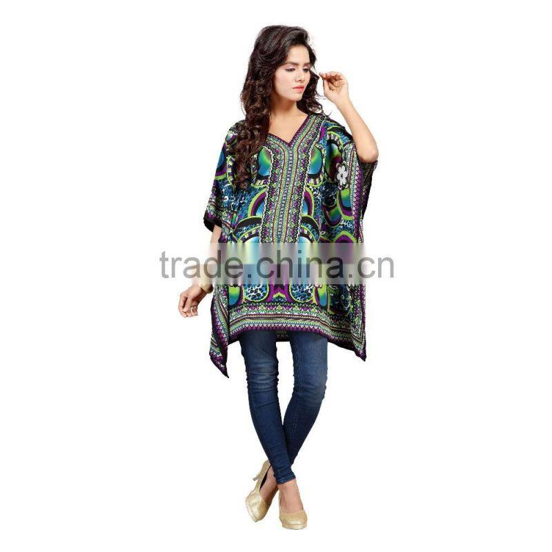 This Eye-Catching Elegant Is Perfect for Any Occasion.This Ari Work & Machine Printed ( Kaftan / Poncho ) Keeps Ahead in the Fashionable ( Kaftan / Poncho ) industry.This Blue ,Pink , Orange , Green Color On Canvas Crape Fabric ( Kaftan / Poncho ) is an Original SitatexFashions design .
