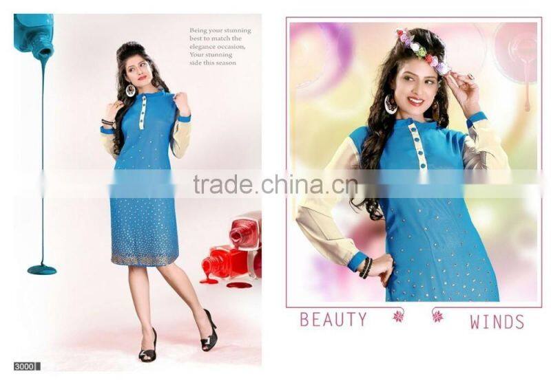 This Eye-Catching Elegant Is Perfect for Any Occasion.This Ari Work & Machine Embroidery dress Keeps Ahead in the Fashionable Kurti industry.This Blue Color Faux Georgette Kurti is an Original SitatexFashions design .