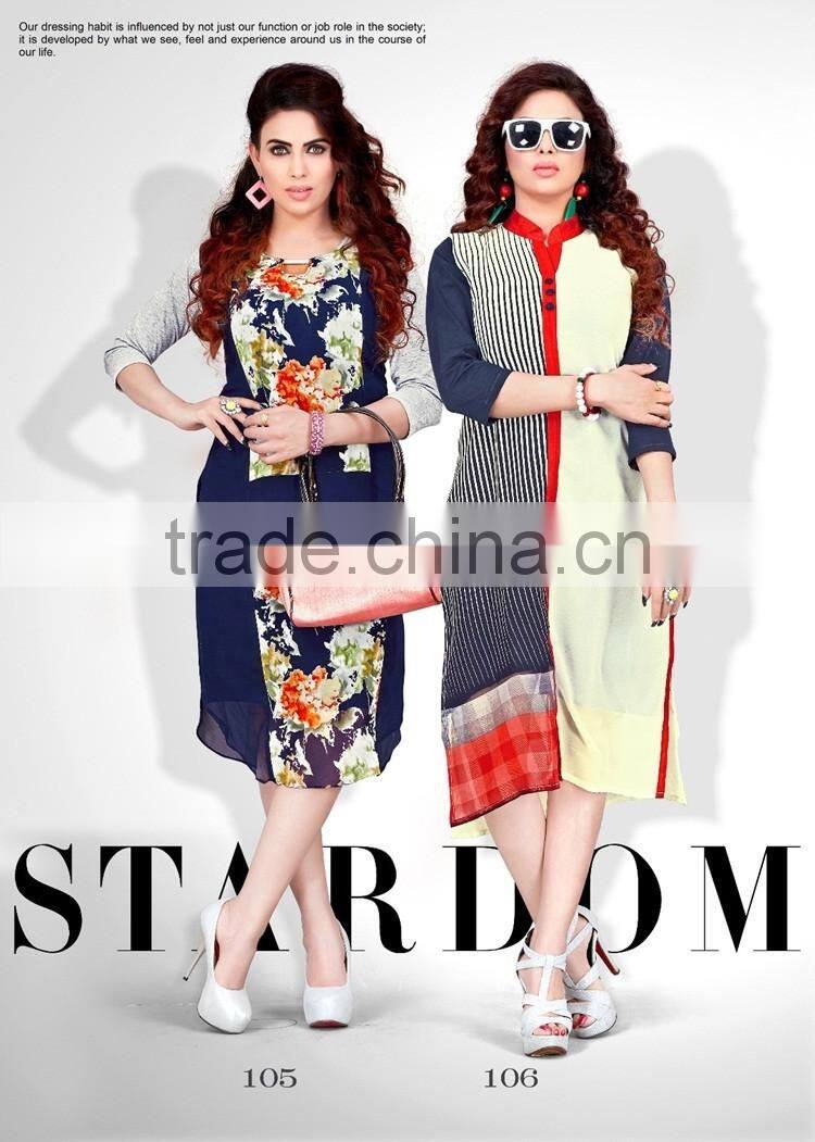 Glamour Faux Georgette Kurtis ( Geo 2 Kurti )/ladies Plain Cotton Kurti/latest Long Kurti Designs