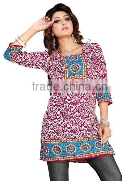 This Eye-Catching Elegant Is Perfect for Any Occasion.This Ari Work & Machine Printed Kurti Keeps Ahead in the Fashionable Kurti industry.This Green, Pink, and Red Color On Canvas Crape Fabric Kurti is an Original SitatexFashions design .