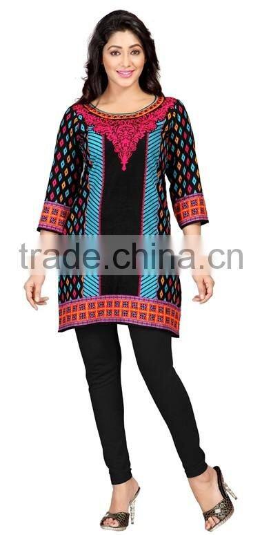 This Eye-Catching Elegant Is Perfect for Any Occasion.This Ari Work & Machine Printed Kurti Keeps Ahead in the Fashionable Kurti industry.This Blue ,Pink , Red , and Green Color On Canvas Crape Fabric Kurti is an Original SitatexFashions design .