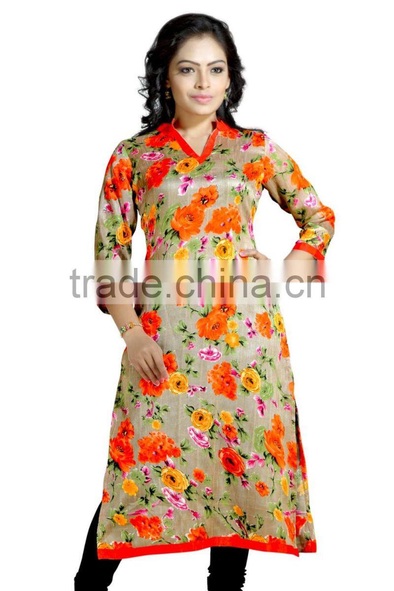 1. MACHINE PRINTED JUTE SILK KURTI