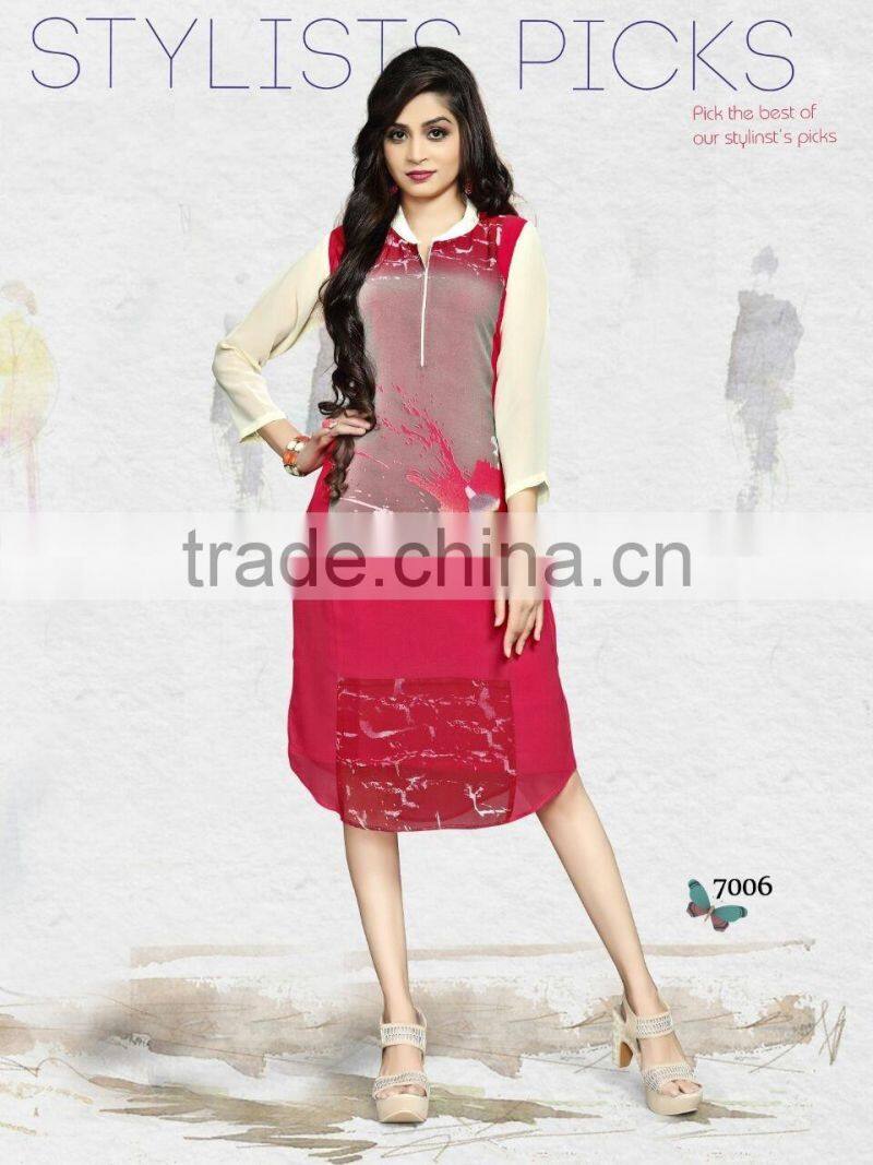 This Eye-Catching Elegant Is Perfect for Any Occasion.This Ari Work & Machine Printed dress Keeps Ahead in the Fashionable Kurti industry.This  is on Georgette Fabric Kurti is an Original SitatexFashions design .
