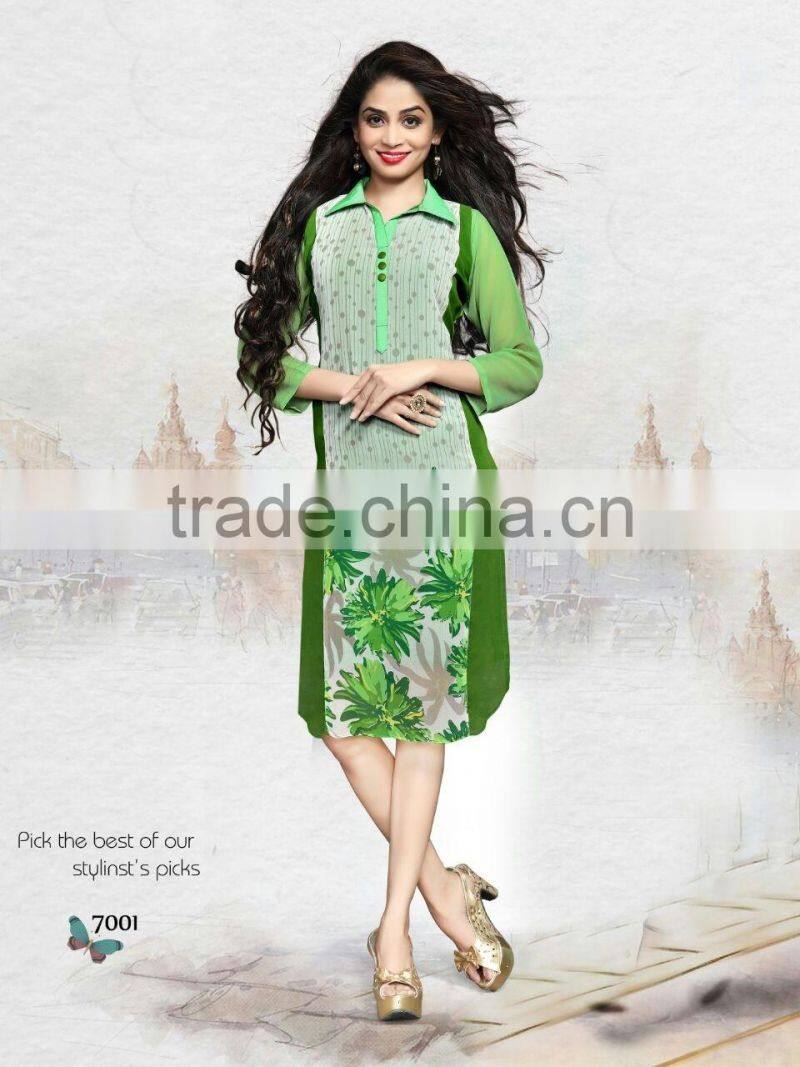 This Eye-Catching Elegant Is Perfect for Any Occasion.This Ari Work & Machine Printed dress Keeps Ahead in the Fashionable Kurti industry.This  is on Georgette Fabric Kurti is an Original SitatexFashions design .
