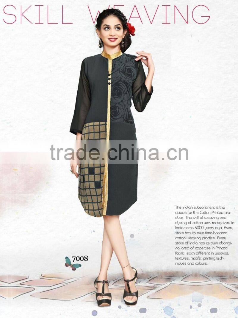 This Eye-Catching Elegant Is Perfect for Any Occasion.This Ari Work & Machine Printed dress Keeps Ahead in the Fashionable Kurti industry.This is on Georgette Fabric Kurti is an Original SitatexFashions design .