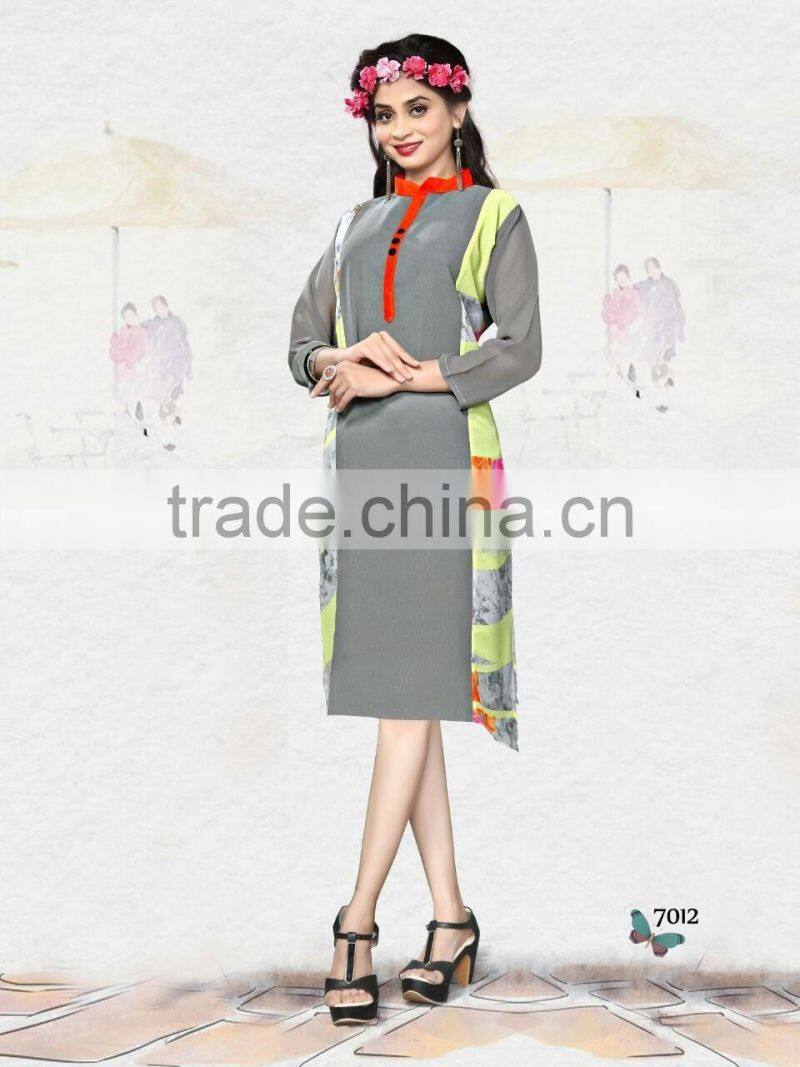 This Eye-Catching Elegant Is Perfect for Any Occasion.This Ari Work & Machine Printed dress Keeps Ahead in the Fashionable Kurti industry.This is on Georgette Fabric Kurti is an Original SitatexFashions design .