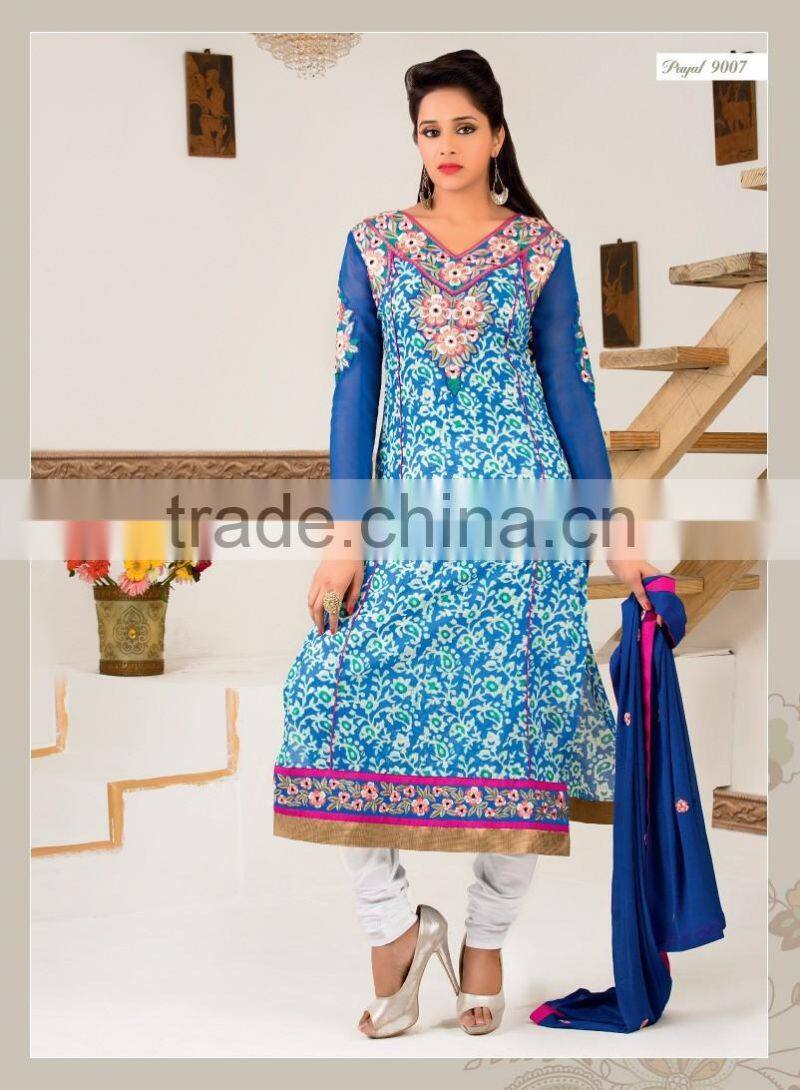 Cotton Jacquard ReadyMade Suits With Designer Blue Top Plain White Bottom+ One Dupatta