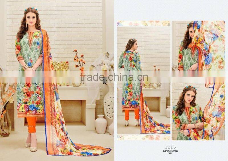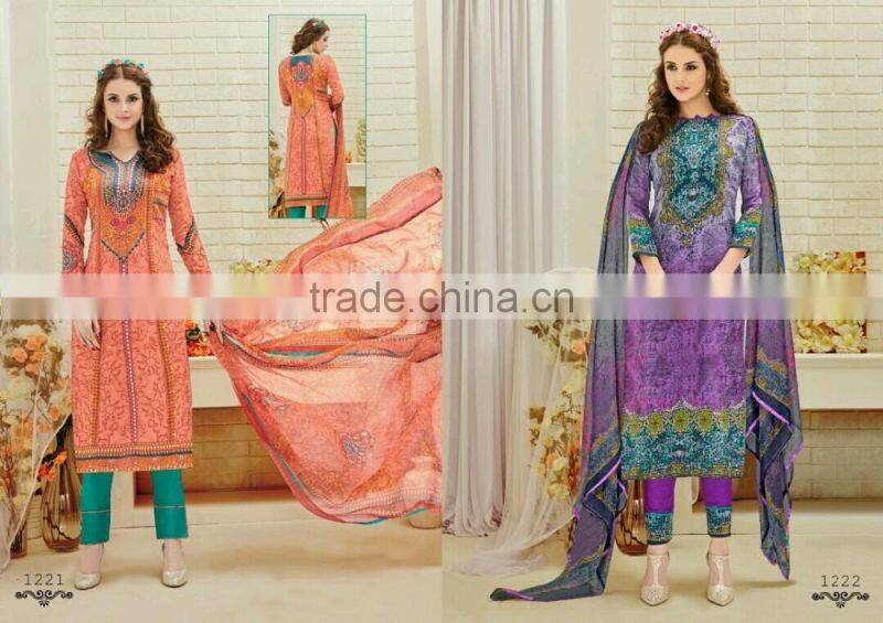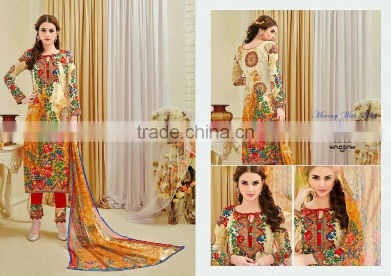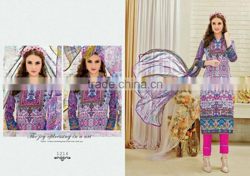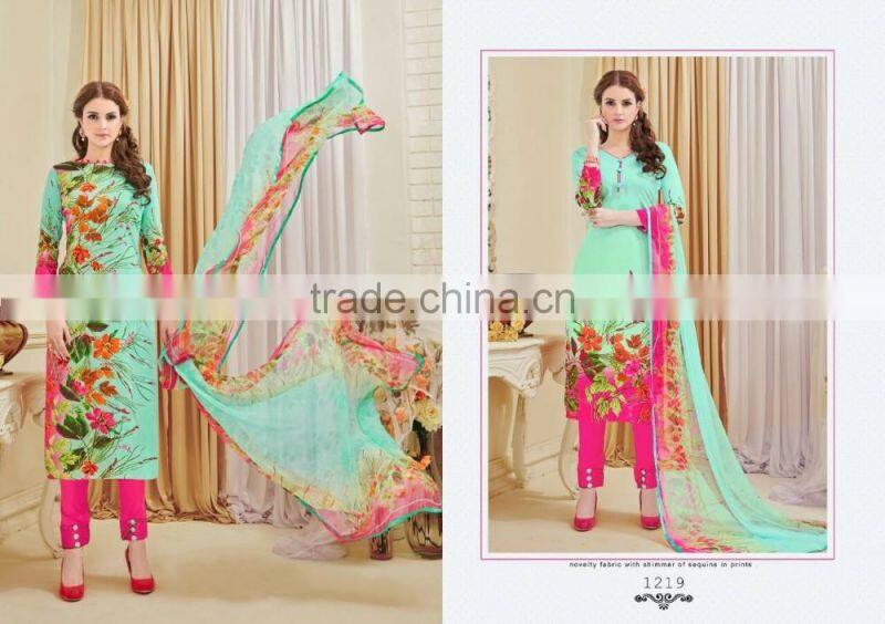 This Eye-Catching Elegant Is Perfect for Any Occasion.This Printed Machine to Made by Designer Printed Suits Keeps Ahead in the Fashionable Suits industry.This is On Cotton Satin Fabric Suits is an Original SitatexFashions design .