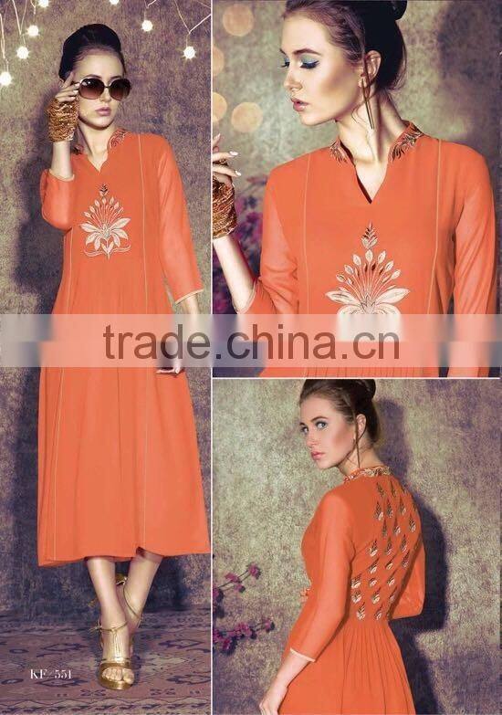 This Eye-Catching Elegant Is Perfect for Any Occasion.This Ari Work & Machine Embroidery dress Keeps Ahead in the Fashionable Tops industry.This Orange Color Georgette Tops is an Original SitatexFashions design .